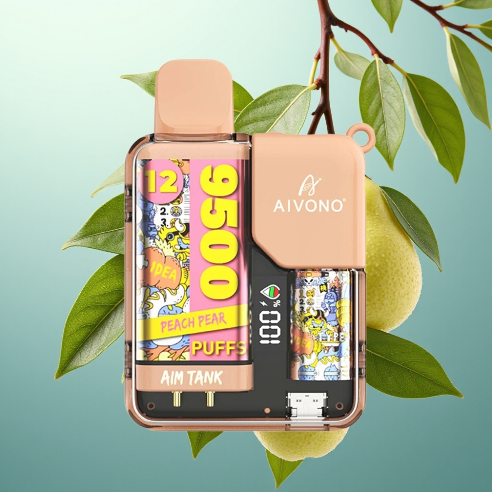 Aivono AIM-TANK 9500 Pufov, 18ml, 650mAh, bresnikotinski/mesni coil, breskva hruška