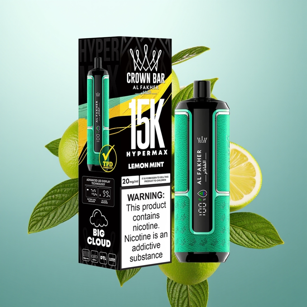 Odkrijte vrhunsko vape izkušnjo z Al Fakher Crown Bar 15K Hypermax, ki združuje trajnost, moč in izjemen okus – ne glede na to, ali imate raje sadežne ali osvežujoče okuse.