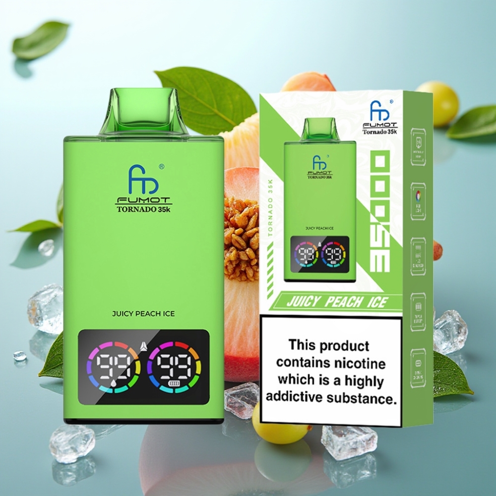 Fumot Tornado 35000 Zamegljeno breskvina led, dvojna mreža, RGB, USB-C, hitro polnjenje