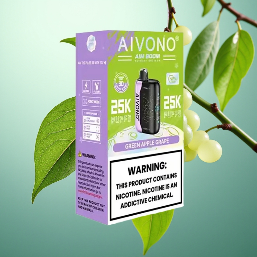 Aivono AIM BOOM 25000 Puffov 0%/2%/3%/5% Nikotin 28ml Zeleno Jabolko Grozdje