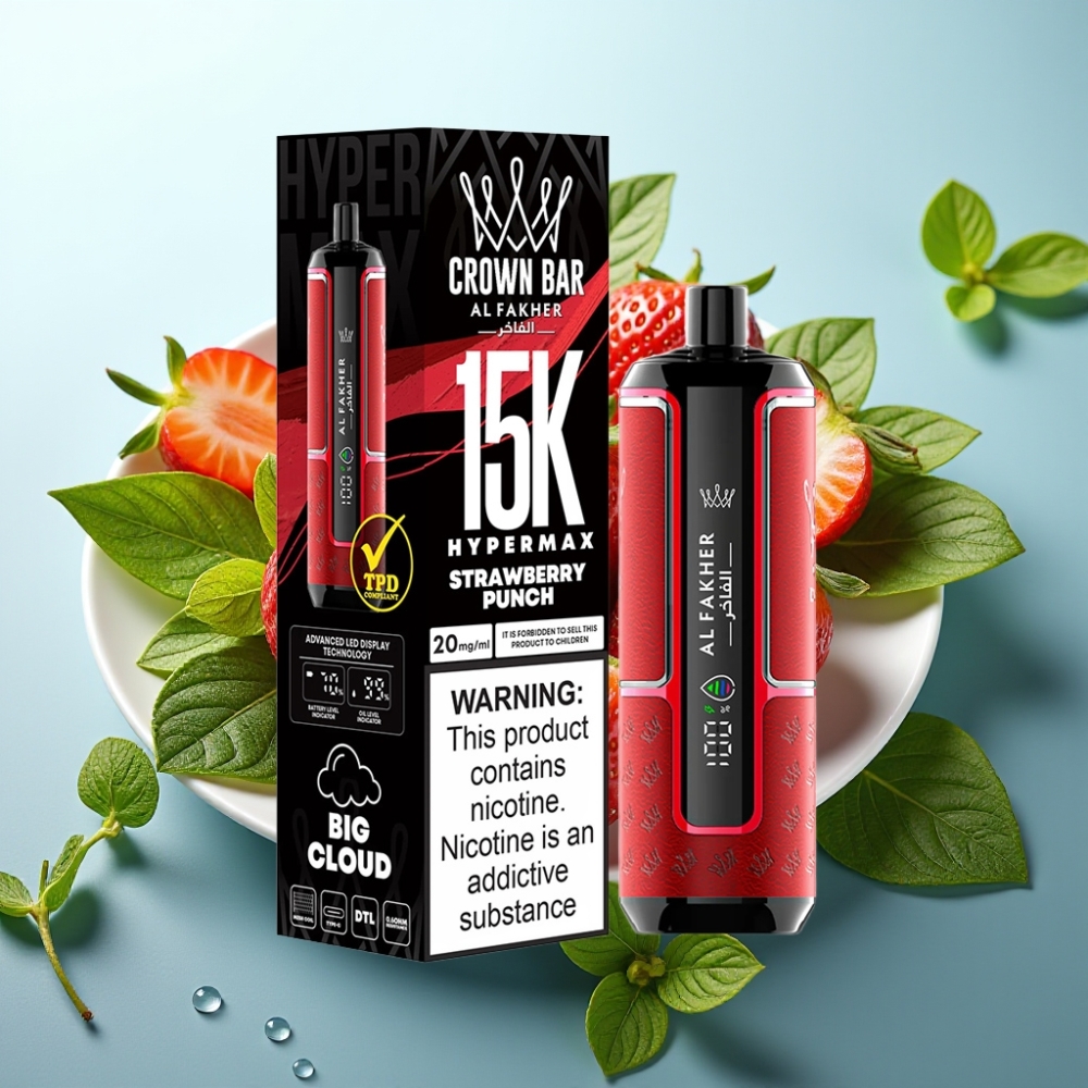 Al Fakher Crown Bar 15K Hypermax Disposable Vape Kit Jagodni Punč 22ml 15K DTL