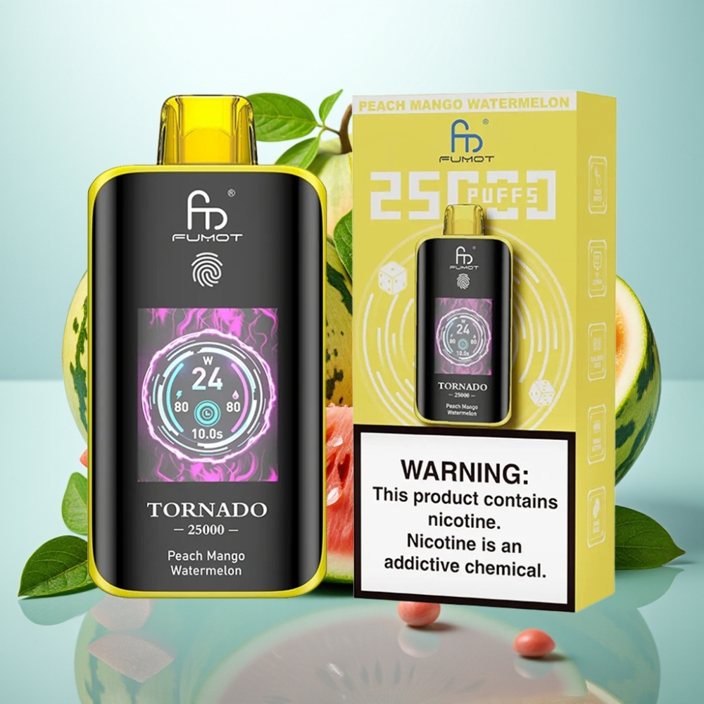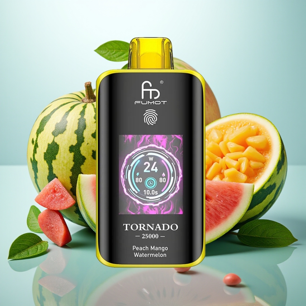 Fumot Tornado 25000 Puffs HD zaslon, 700mAh, 20ml, Breskvica mango lubenica