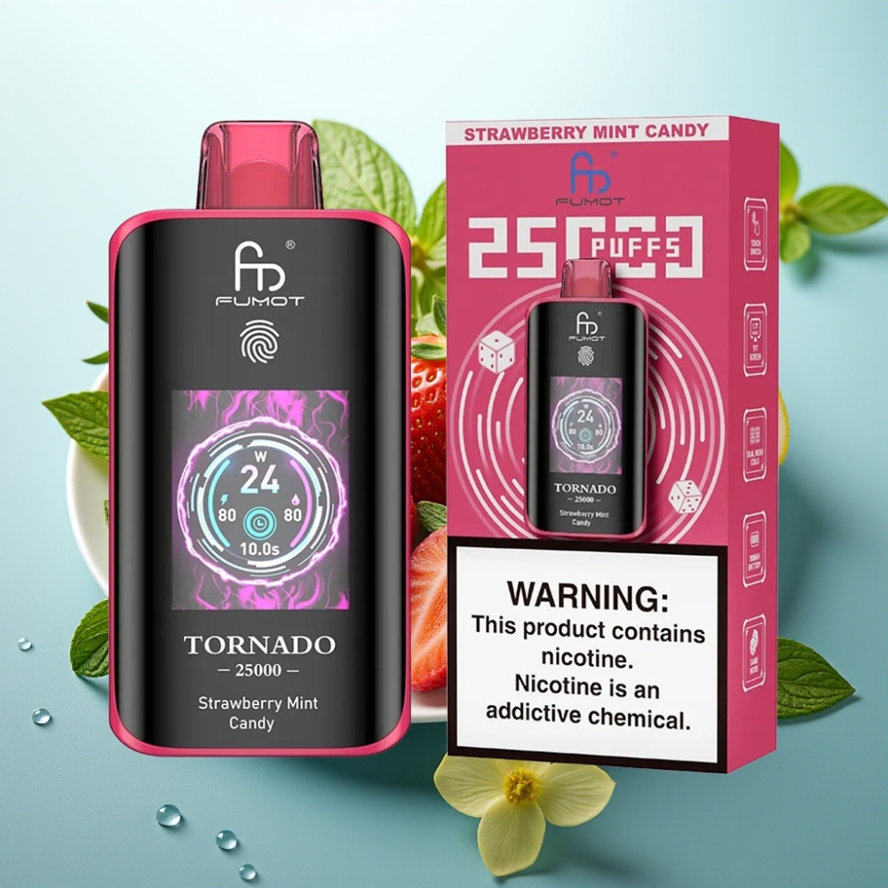 Fumot Tornado 25000 Puffs HD zaslon, 700mAh, jagoda meta bonboni, 20ml, Type-C