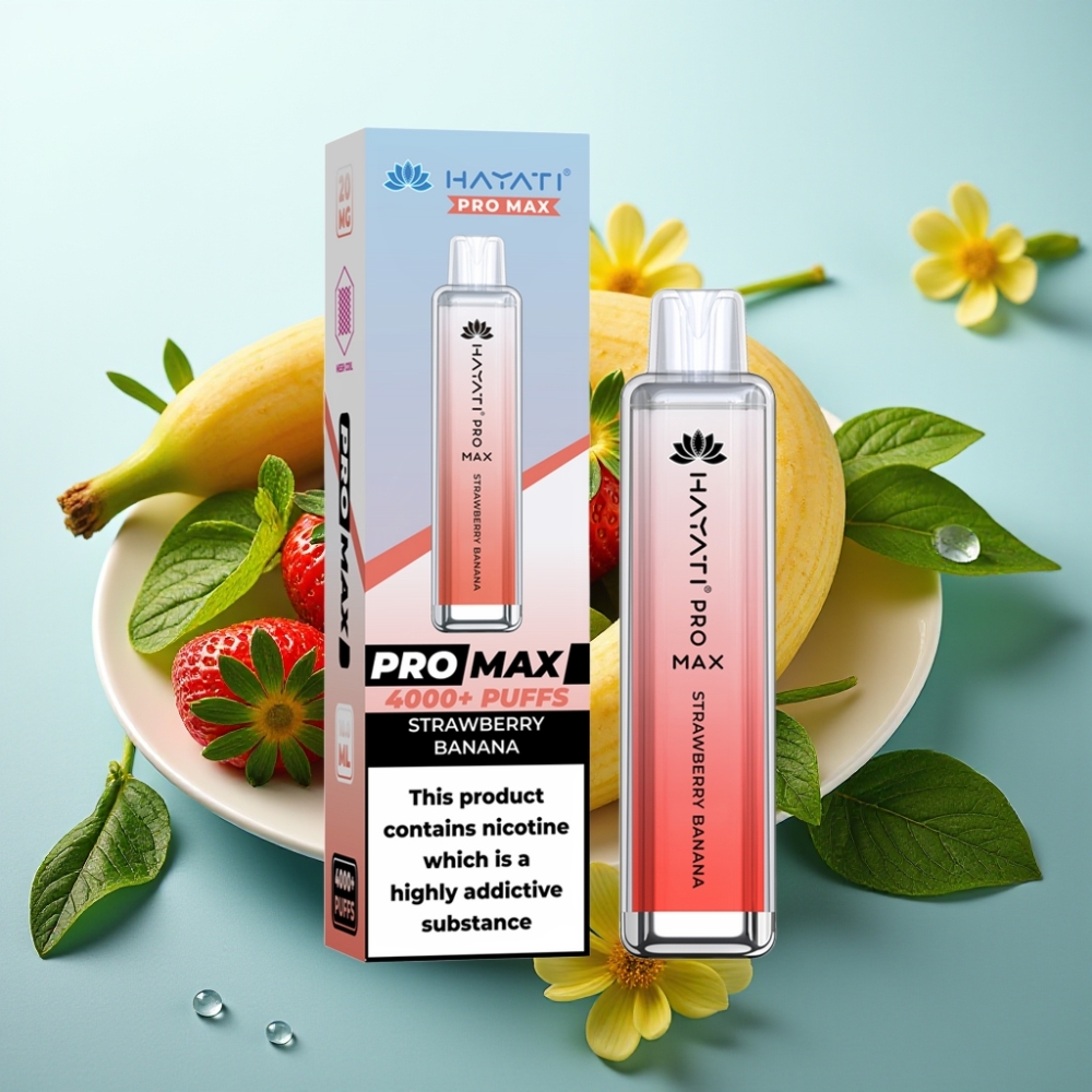 Hayati Pro Max 4000 Puffs 2%/5% Nikotina 1400mAh Dvojna 1.1 Ohm Mreža Jagoda Banana