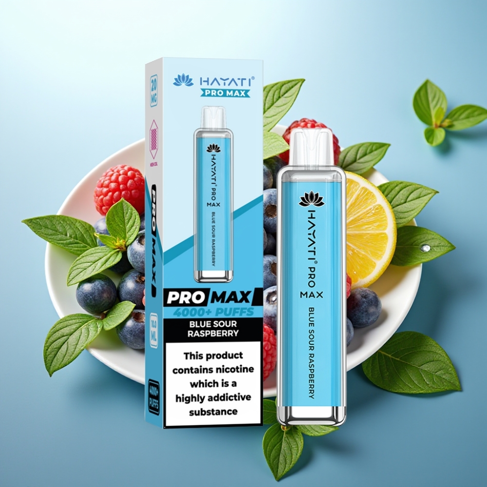 Hayati Pro Max 4000 Puffs Disposable Vape Modro Kislo Malinovo 28×28×120mm 2ml 1400mAh
