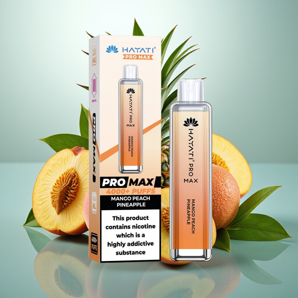 Hayati Pro Max 4000 Puffs Ponovno Polnjenje Dual Coil Mango Breskev Ananas